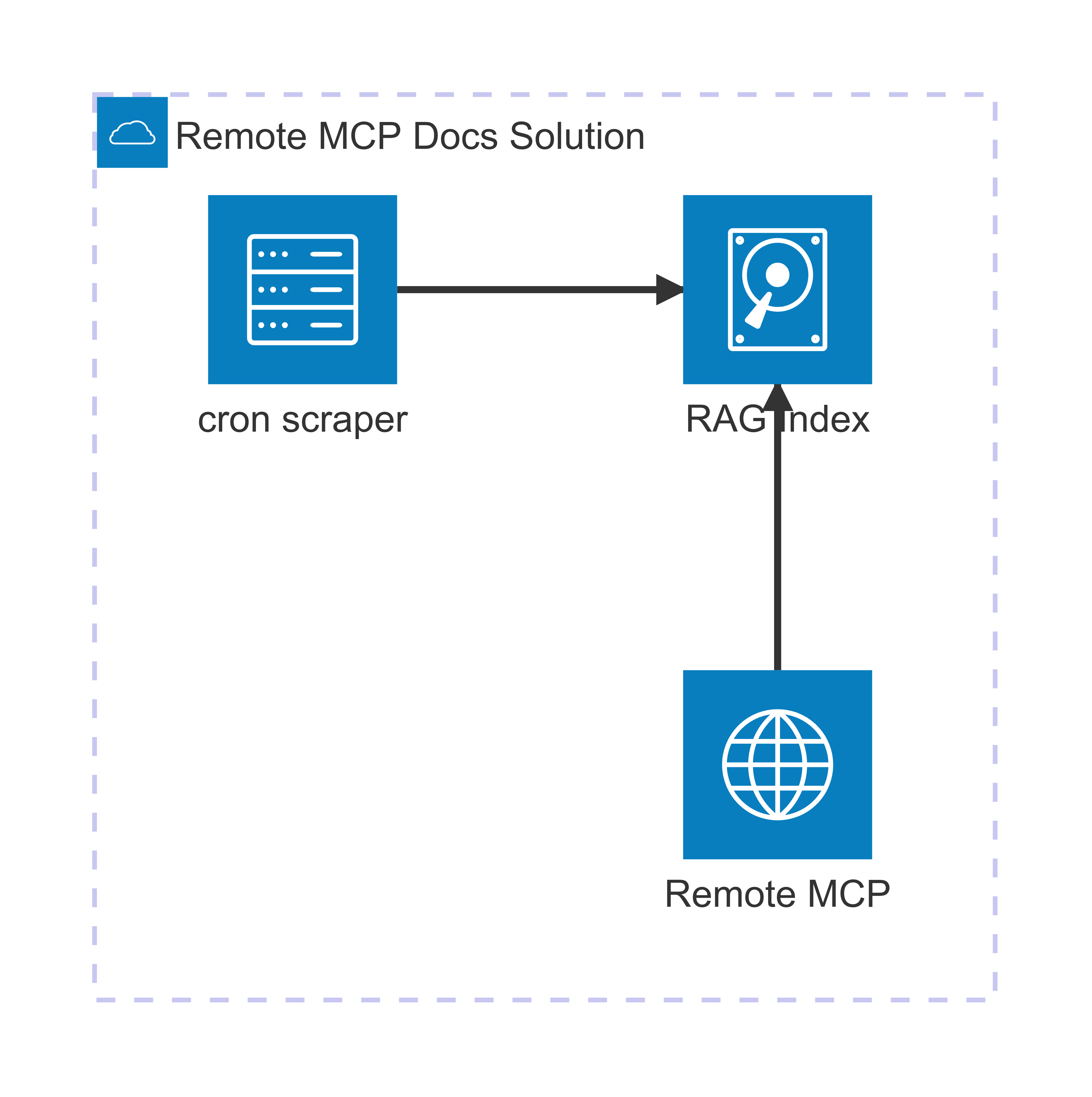 While it would have been possible to make a local MCP server that users install and run locally the scrape, tokenize, and create vector embeddings for a list of documentation sites, that wouldn’t de-duplicate the processing. Each user would then be creating their own instance of the MCP server and would need to pre-process their own RAG index.
