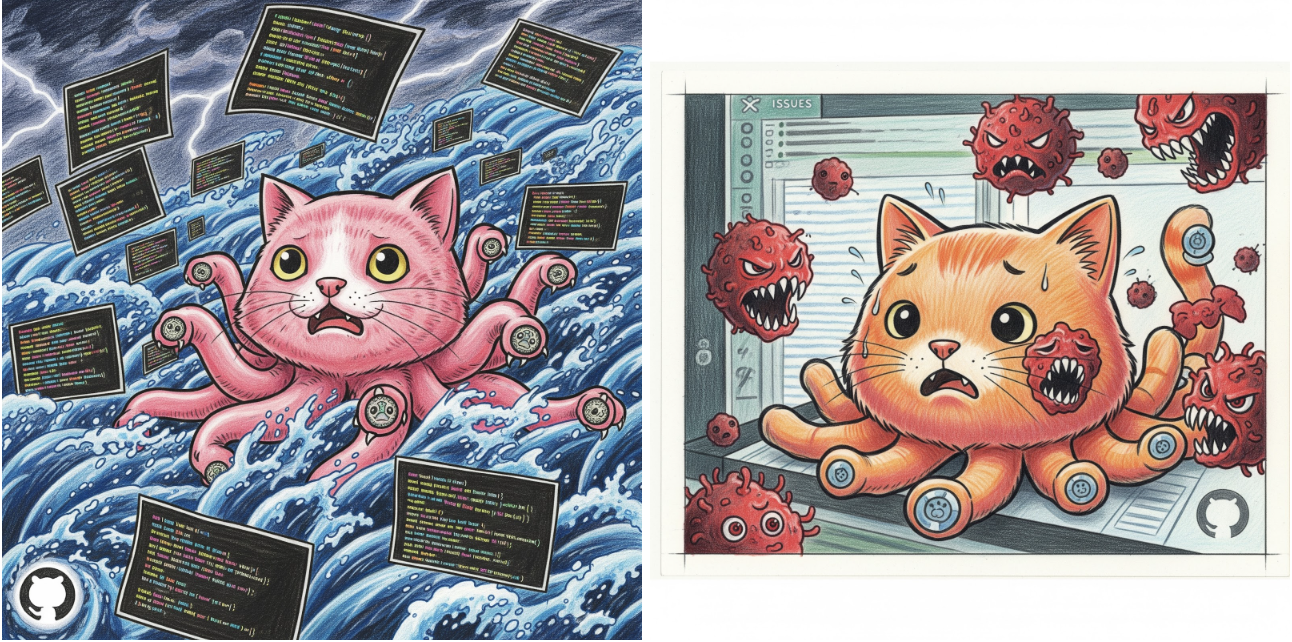images by Gemini: “the github octocat getting attacked by issues containing malicious code”