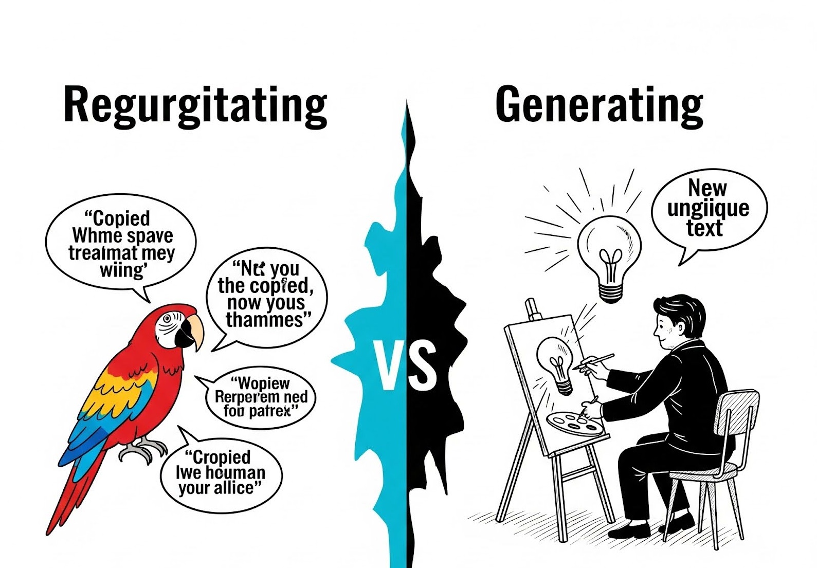 image by Gemini “infographic specifically focused on visually depicting the generating vs regurgitating section”