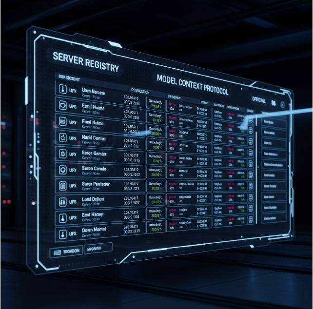gemini image from prompt: an official-ish looking server registry for model context protocol servers in cyberpunk style